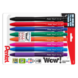 • Wow! Retractable Ballpoint Pen, (1.4mm) Bold Line, Assorted Ink, 8-Pack