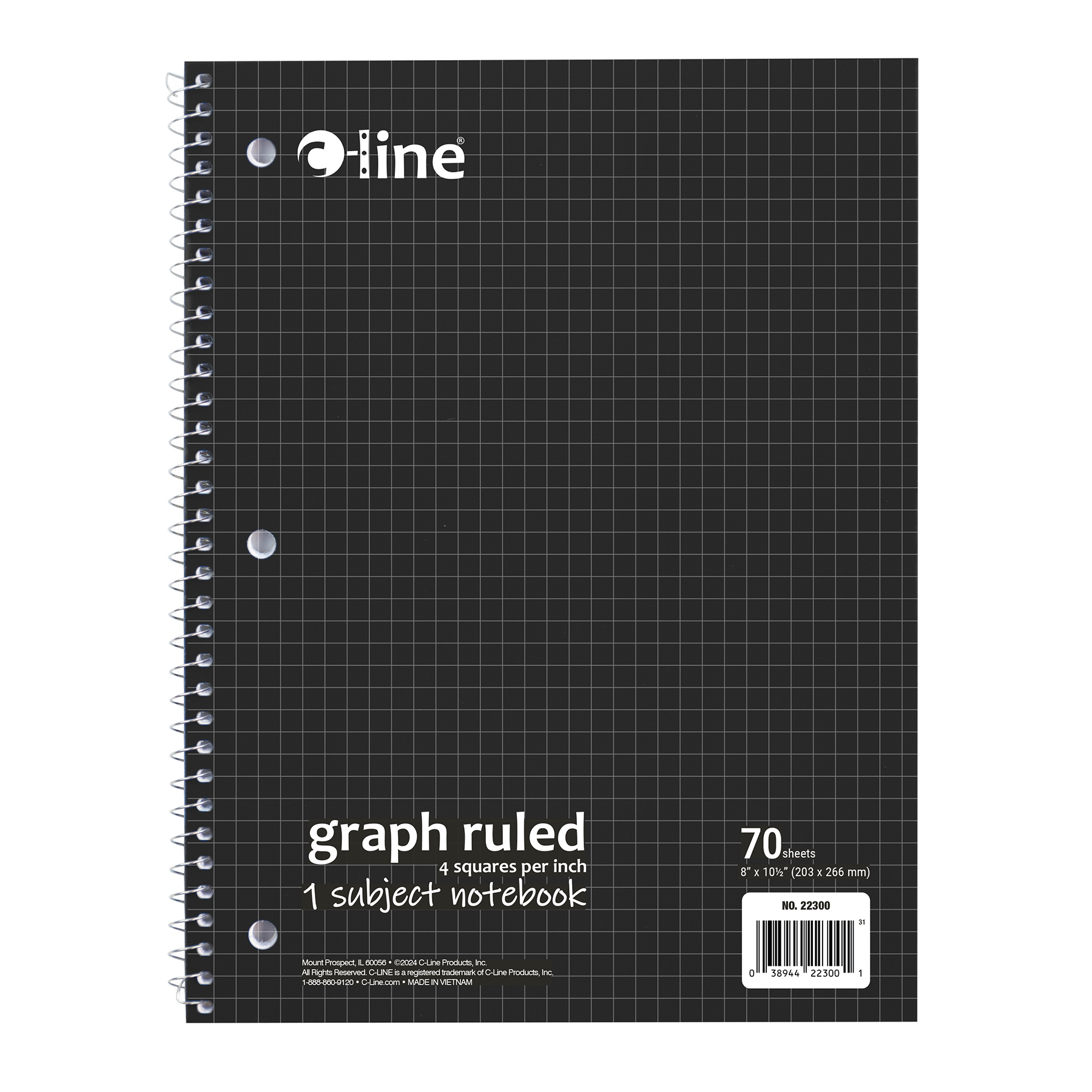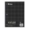 The Graph Ruled 1-Subject Notebook lets you create graphs, charts, drawing or simply take notes. 3-hole punch makes it easy to add to standard 3-ring binders. The 4 x 4 graph ruling provides a neat guide for your drawings and notetaking. Perfect for students and professionals, these notebooks feature a durable cover that helps protect the content written on the pages inside. Graph ruled format, bright white paper allows for neat drawing of charts and graphs. Solid colored front cover adds style to notebooks. Attach this 3-hole punched 1-subject notebook into a standard 3-ring binder to create the ultimate organizational tool that keeps all your charts and drawings in one place. Perforated edges reduce paper waste by allowing pages to tear out neatly. 70-sheet spiral bound notebook. Each sheet features four squares per inch. Black front cover, gray board back cover. Includes 1 notebook.
