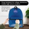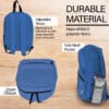 This school bag features 2 compartments: the large compartment is great for larger items such as text book, binders, laptops, etc., while smaller compartment located in front is perfect for cell phones, keys, hand sanitizer and more. There are 2 zipper pulls for the large compartment, and 1 zipper pull for the smaller compartment. The 2 adjustable shoulder straps are nicely padded for comfort while carrying the backpack. There is a nylon handle on top of the backpack, convenient for hanging the backpack on hook outside of classrooms, or any hanger.