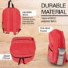 This school bag features 2 compartments: the large compartment is great for larger items such as text book, binders, laptops, etc., while smaller compartment located in front is perfect for cell phones, keys, hand sanitizer and more. There are 2 zipper pulls for the large compartment, and 1 zipper pull for the smaller compartment. The 2 adjustable shoulder straps are nicely padded for comfort while carrying the backpack. There is a nylon handle on top of the backpack, convenient for hanging the backpack on hook outside of classrooms, or any hanger.