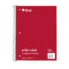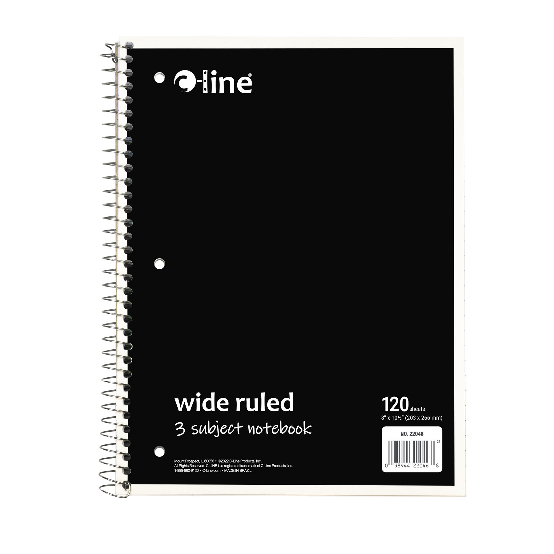 Instantly create writing space in binders and folders, by inserting the Spiral-Bound 3-Subject Notebook. Perfect for students and professionals, these notebooks feature a durable cover that helps protect the content written on the pages inside. Wide ruled format: the bright white paper has blue handwriting lines with a red margin divider to allow for neat writing. Solid colored front cover adds style to notebooks, while also making it easy to organize projects or classes by color. Attach this 3-hole punched spiral notebook into a standard 3-ring binder to create the ultimate organizational tool that keeps all your notes and hand-outs in one place. Perforated edges reduce paper waste by allowing pages to tear out neatly. 120-sheet spiral bound notebook with 2 dividers with pockets to keep subjects organized. Colored front cover, gray board back cover. Sold individually in assorted colors (no color choice).