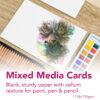 iv : MIXED MEDIA VELLUM PAPER—Enjoy heavyweight paper (117lb/190gsm) with a medium tooth texturing that captures detailed work from pen, marker & pencil while also withstanding wet media like watercolor & gouache