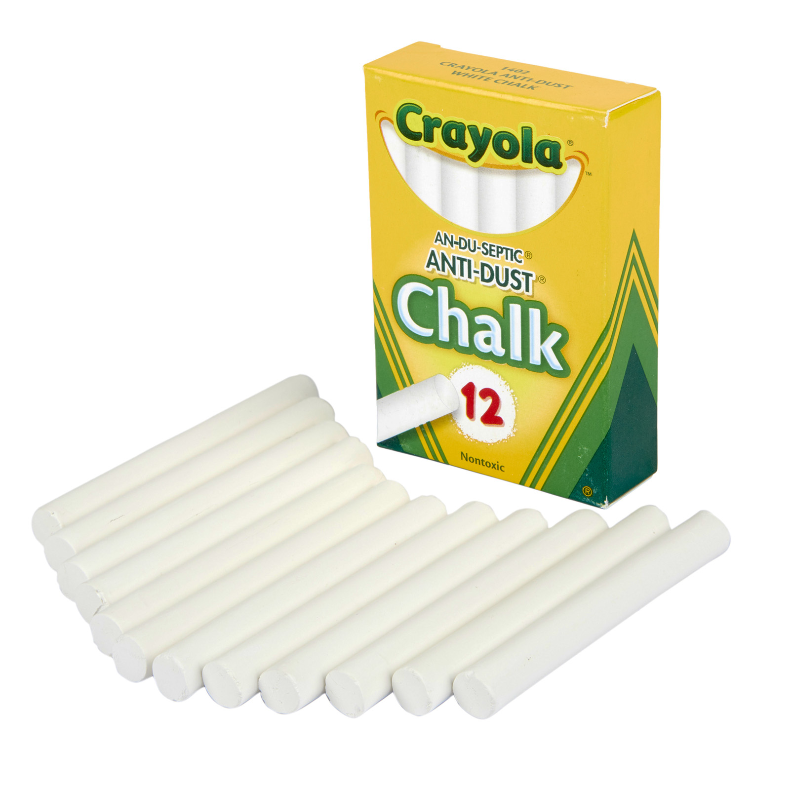 Crayola Anti-Dust Chalk sticks are non-toxic and made with an anti-dust formula that minimizes chalk dust. Chalk marks are easily cleaned off children’s chalkboards. Kids can practice writing and drawing on chalkboards, as well as construction paper, cardboard, craft paper and even brown paper bags. The smooth chalk sticks resist breaking and scratching or skipping on art surfaces. Includes 12 non-toxic sticks of Crayola Anti-Dust Chalk in White.