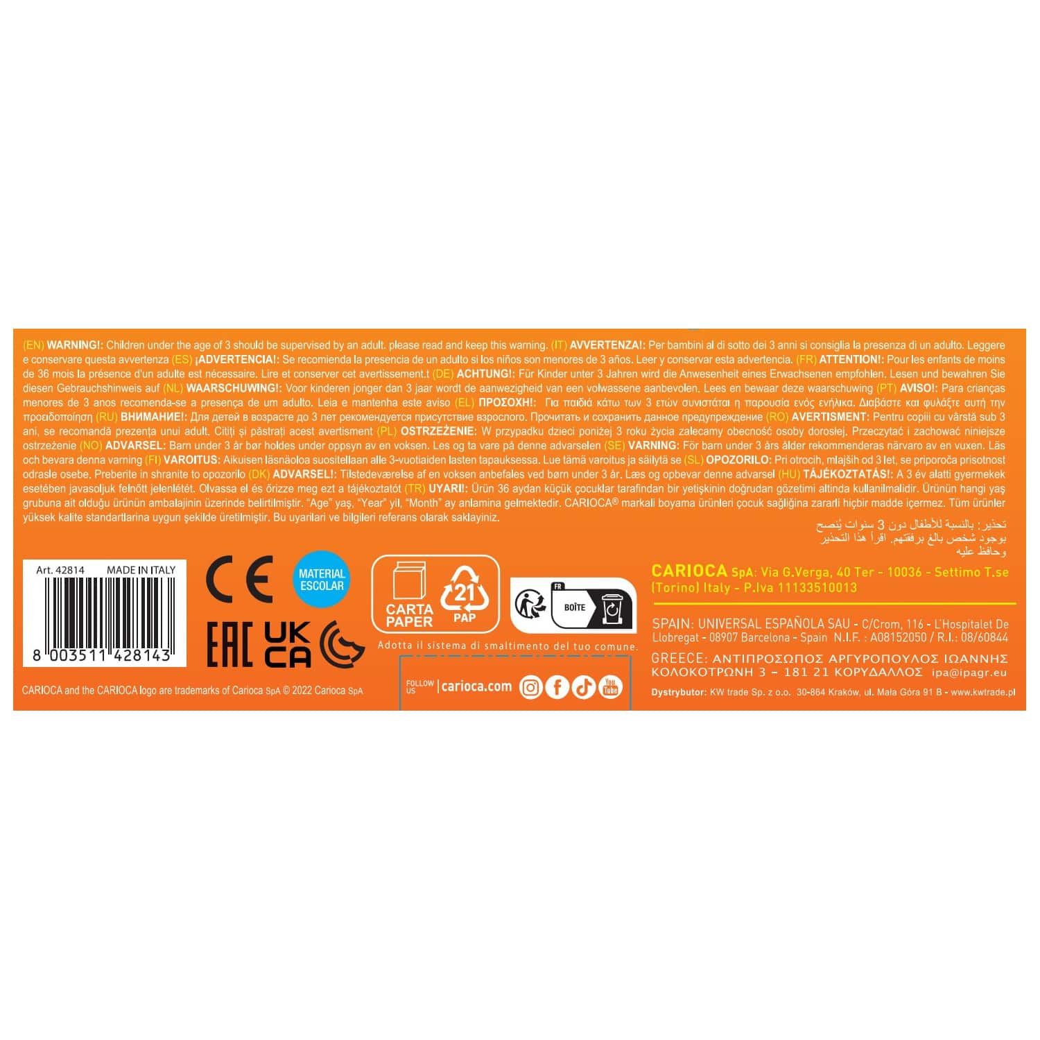 The Carioca BABY Valorous Marker – 12 Piece set is specially designed for little hands, making it perfect for children aged 24 months and up. Each marker features a rounded, locked tip for maximum safety, while the ergonomic large body allows for easy grip and effortless coloring over larger surfaces. The super-washable, non-toxic ink cleans off skin and fabrics using only water—no soap required. Dermatologically tested, these markers ensure safe, worry-free creative play, helping young artists explore color and develop their skills.