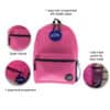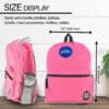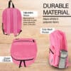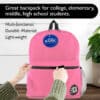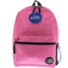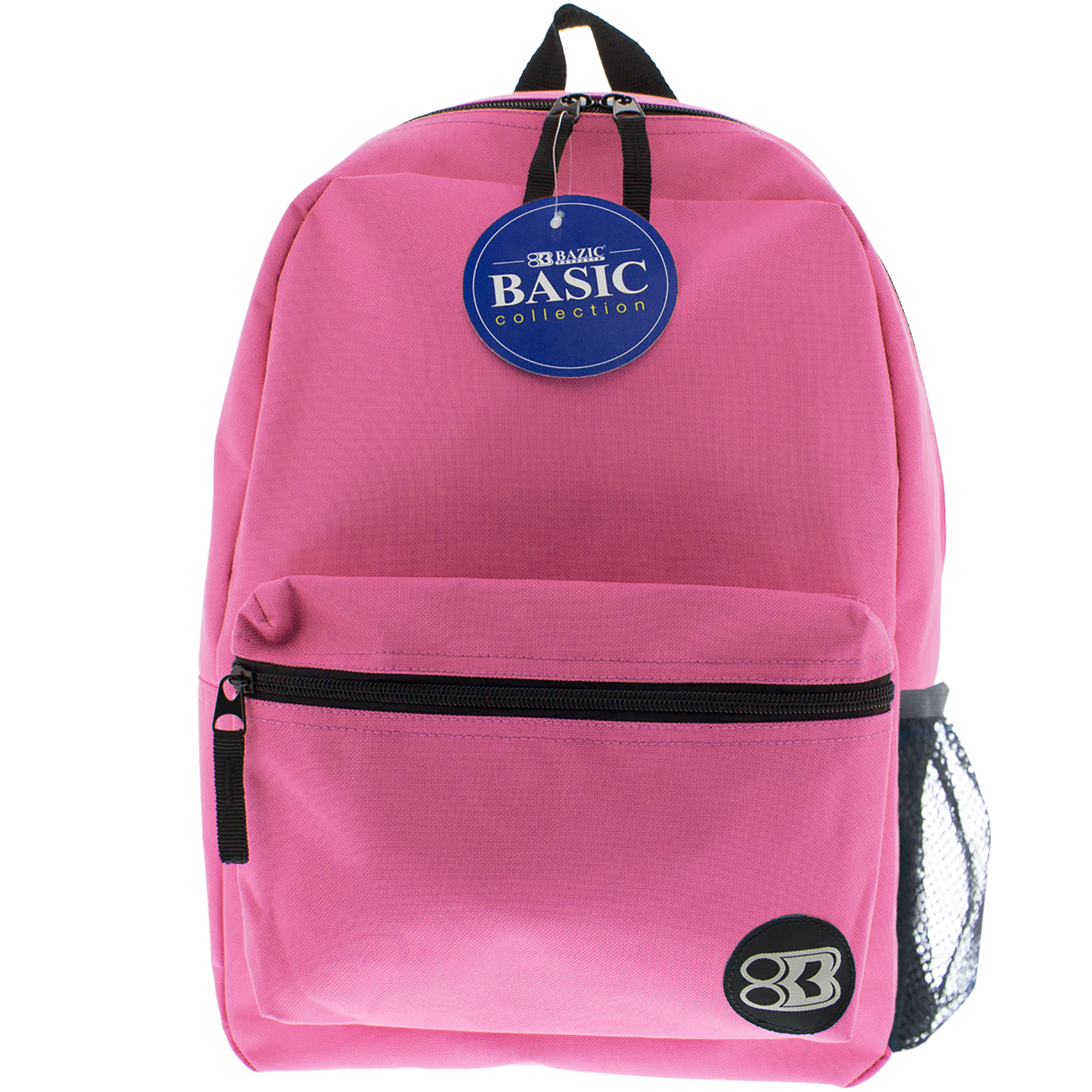 This 16″ school bag features 2 compartments: one large compartment mainly for larger items such as text book, binders, and laptops, the other compartment is a smaller compartment located in front, mainly for smaller items, such as cell phones, keys, and hand sanitizer. Both compartments have zipper closure. There are 2 adjustable shoulder straps nicely padded for comfort when carrying the backpack. There are 2 zipper pulls for the large compartment, and 1 zipper pull for the smaller compartment. There is a nylon handle on top of the backpack, convenient for hanging the backpack on hook outside of classrooms, or any hanger. Bazic Products’ logo is stitched in the front, on the bottom right of the small compartment for recognition.