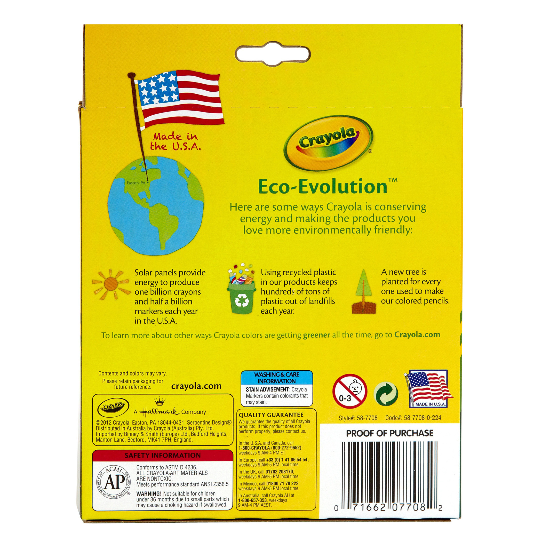 This assortment of markers features 8 classic Crayola colors with high-quality, true-to-color ink. Add bold, vibrant color to artwork, school assignments, and other creative projects. The variety of bright, classic colors in this pack invites imaginative expression. Crayola Broad Line Markers have sturdy conical tips that make them ideal for a variety of classroom and group art projects. Great for coloring in large areas, these markers also work well for drawing thin lines or dots. Broad-line markers lay down plenty of color and won’t smudge or bleed through paper. Crayola Markers contain recycled plastic resin, which keeps hundreds of tons of plastic out of landfills every year. Bring beauty and color to your world and help keep plastic out of landfills. Crayola art supplies and activities help children express, create, and connect through colorful play. Each pack includes 8 Crayola Broad Line Markers in Classic Colors.