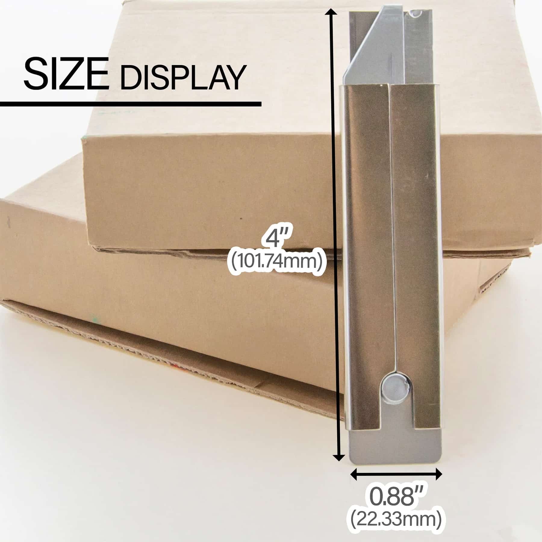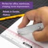 Designed with convenience and reliability in mind, this lightweight cardboard cutter is your go-to tool for everyday tasks at home, in the office, or on the warehouse floor. Crafted from durable, rust-resistant stainless steel, the slim design fits easily into your pocket, drawer, or toolkit for quick access wherever you are. The retractable utility knife blade extends when needed for precision cutting and retracts safely for secure storage, reducing the risk of accidental injury. Whether you’re breaking down boxes, opening packages, or tackling DIY projects, this cutter delivers clean, efficient results. Plus, the easy blade replacement system keeps your cutter in peak condition with minimal effort—refill blades sold separately.