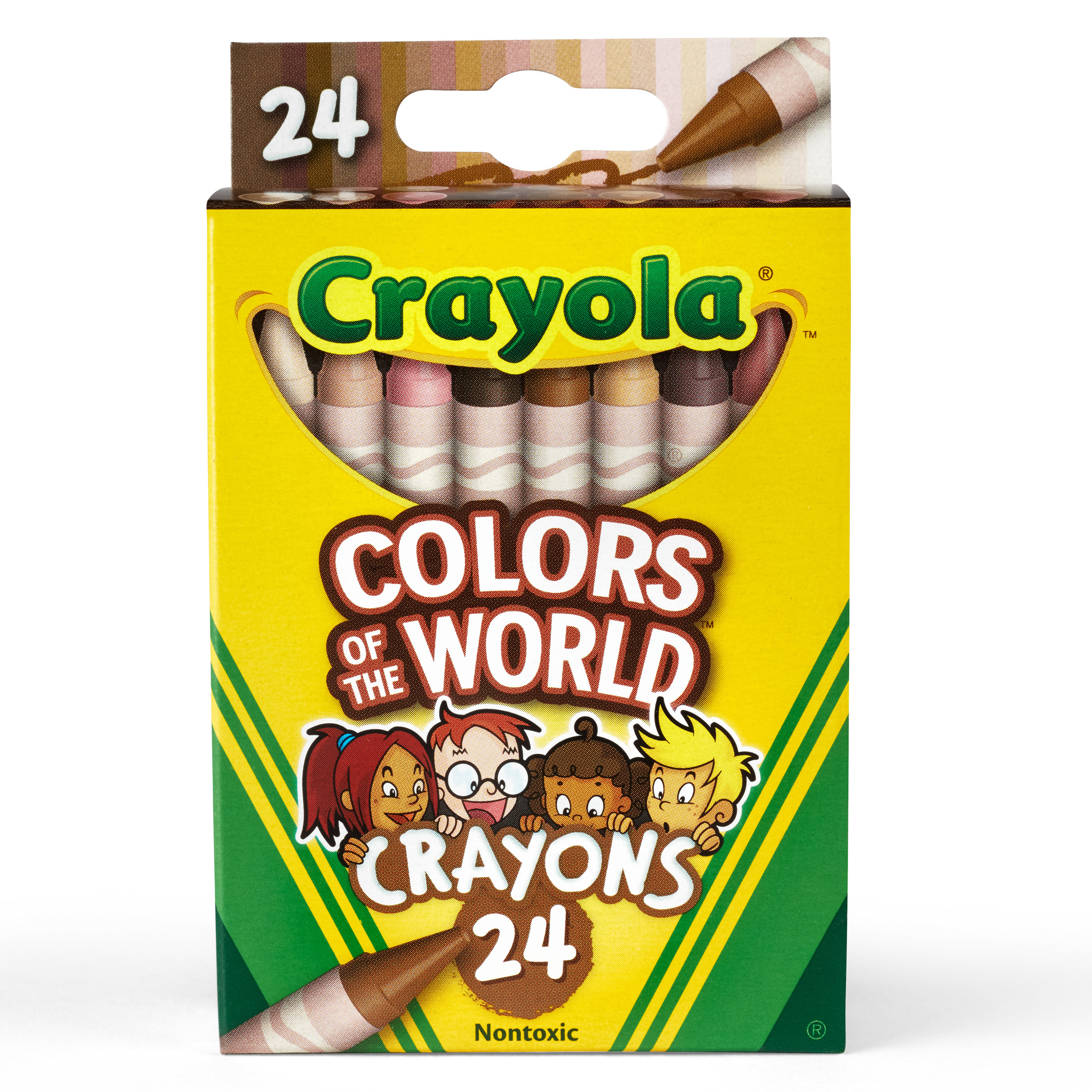 i : This crayon box features 24 crayon colors that represent people from around the world