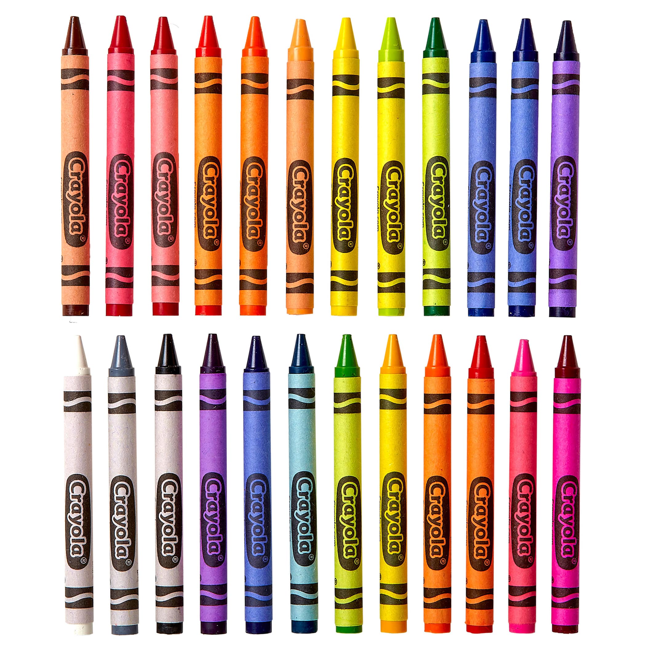 Crayola Crayons provide color-loving kids with 24 hues that feature vibrant, long-lasting color. Amp up school projects and artistic endeavors with high-quality results. The variety of bright colors in this pack invites imaginative expression. Kids will love to use these vividly colored, durable crayons at home or at school. Small enough to fit in a book bag, this portable box is large enough to hold a wide variety of colors. In addition to classic Crayola colors, this 24-count box contains fun shades so you can mix and match to create colorful drawings and bold signs. Crayola Crayons can last 35 percent longer, based on square foot coverage against key competitors. Children can enjoy drawing more pictures and filling coloring books even longer. Each box includes 24 crayons.