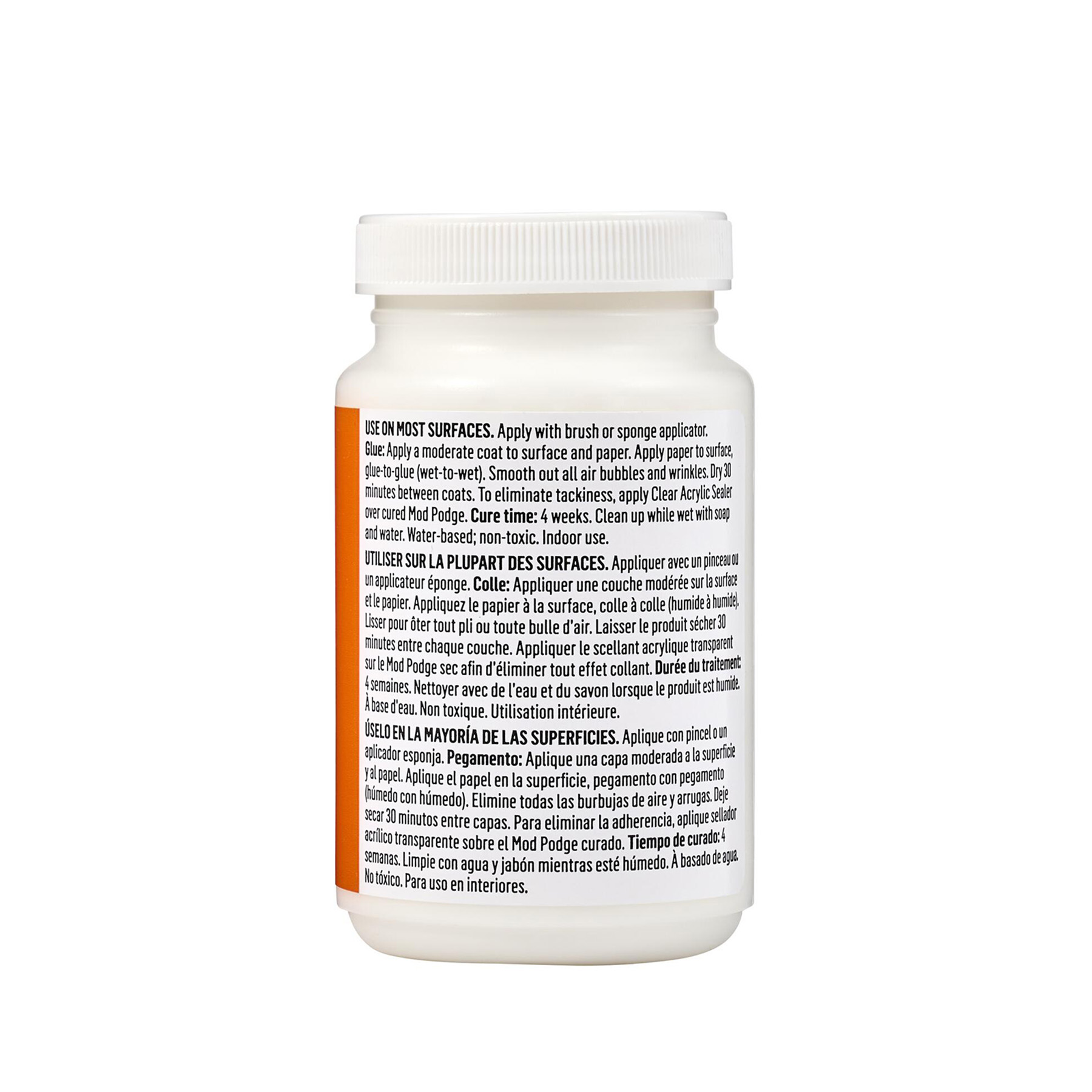 For over 55 years Mod Podge has been America’s favorite glue, sealer, and finish. Mod Podge Satin is quick-drying and dries clear, leaving a smooth, satin finish. Preserve the beauty of your decoupage paper projects and more with this multi-purpose, all-in-one sealant, glue, and finish. Use this decoupage glue to create decoupage tissue paper projects as well as projects using wood, fabric, plastic, and canvas! This handy decoupage glue comes in a variety of other finishes such as gloss, matte, glitter, outdoor, dishwasher safe, and many other unique formulas for every project. Let your creativity come alive with the limitless possibilities of Mod Podge Satin. Includes one 8 oz. bottle.