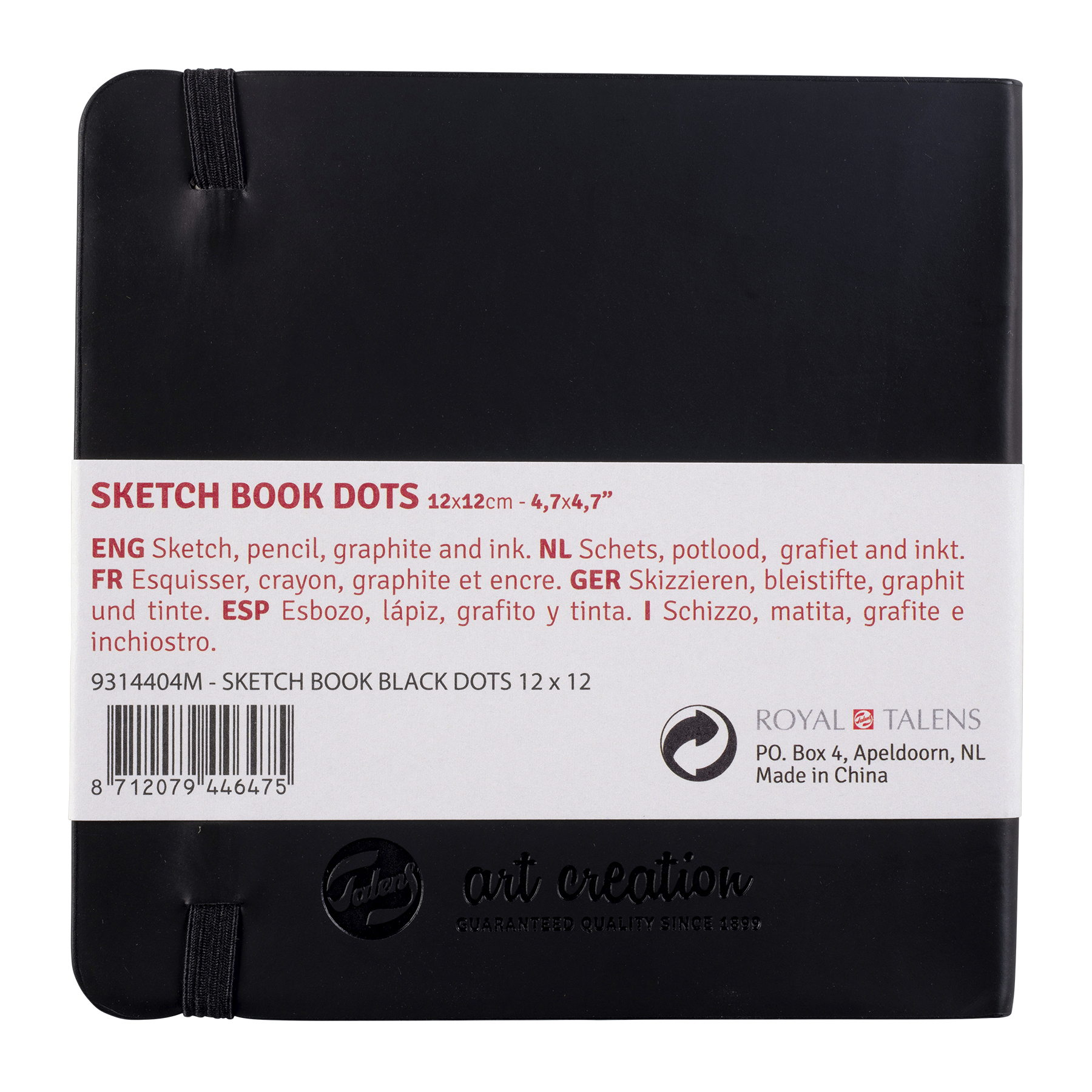 The dotted sheets of these sketchbooks are a wonderful compromise between blank and ruled or gridded sheets; they offer you a guide without taking attention away from what you create. With these evenly spaced dots, you can experience the insurance of lines and the freedom of a blank page in one sketchbook! Use these books for anything you want: taking notes, planning, drawing diagrams, mind maps, sketching, bullet journaling, lettering, calligraphy, you name it! They are suitable for pencil and ink and come in a variety of sizes. Talens Art Creation dotted sketchbooks contain 80 cream-colored, dotted sheets of 80 g/m², feature a soft, stylish black cover and include a ribbon bookmark and elastic closure band.