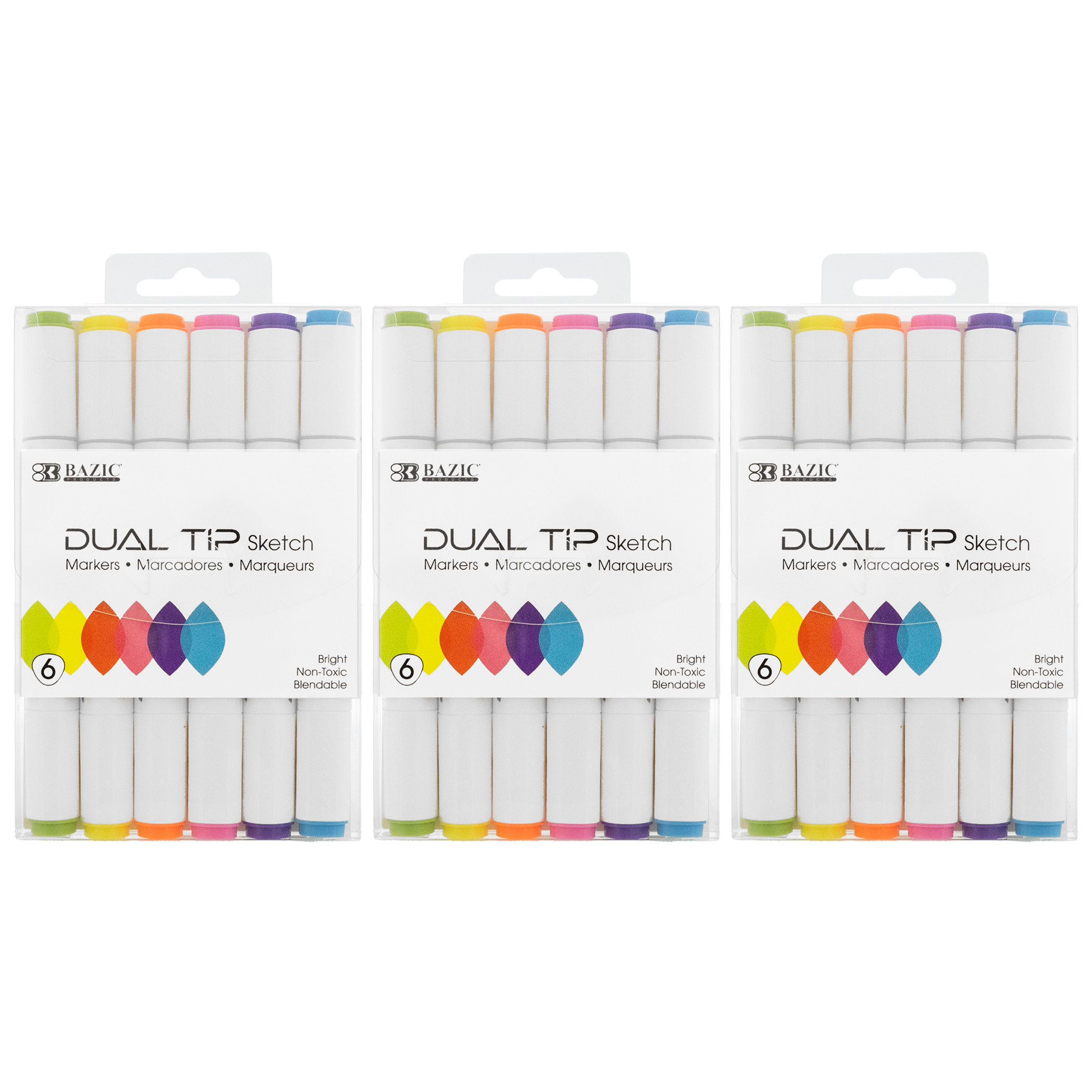 With the double-ended design, you can use 3mm brush tip for sweeping, details, and calligraphic, or the 6.5mm broad strokes chisel tip for quickly color in large areas. Alcohol brush markers are more durable and do not fray easily. *NOTE: Alcohol Based Markers like ALL other brand alcohol markers, will Bleed through regular coloring paper, except very thick paper. Perfect for card making, doodling, and hand-lettering. Excellent smudge-proof and waterproof qualities on most surfaces, work well on ceramics, plastic, or rock. Creative art craft supplies present for teachers, kids, friends, Christmas, Thanksgiving, and Birthdays. High-quality ink blends seamlessly to create beautiful coloring effects. Triangle barrel design provides both a comfortable grip and conveniently prevents markers from rolling off desks and tables. Ideal for professional art and craft. Each pack includes 6 markers in fluorescent colors. Sold as 3 packs for a total of 18 markers.