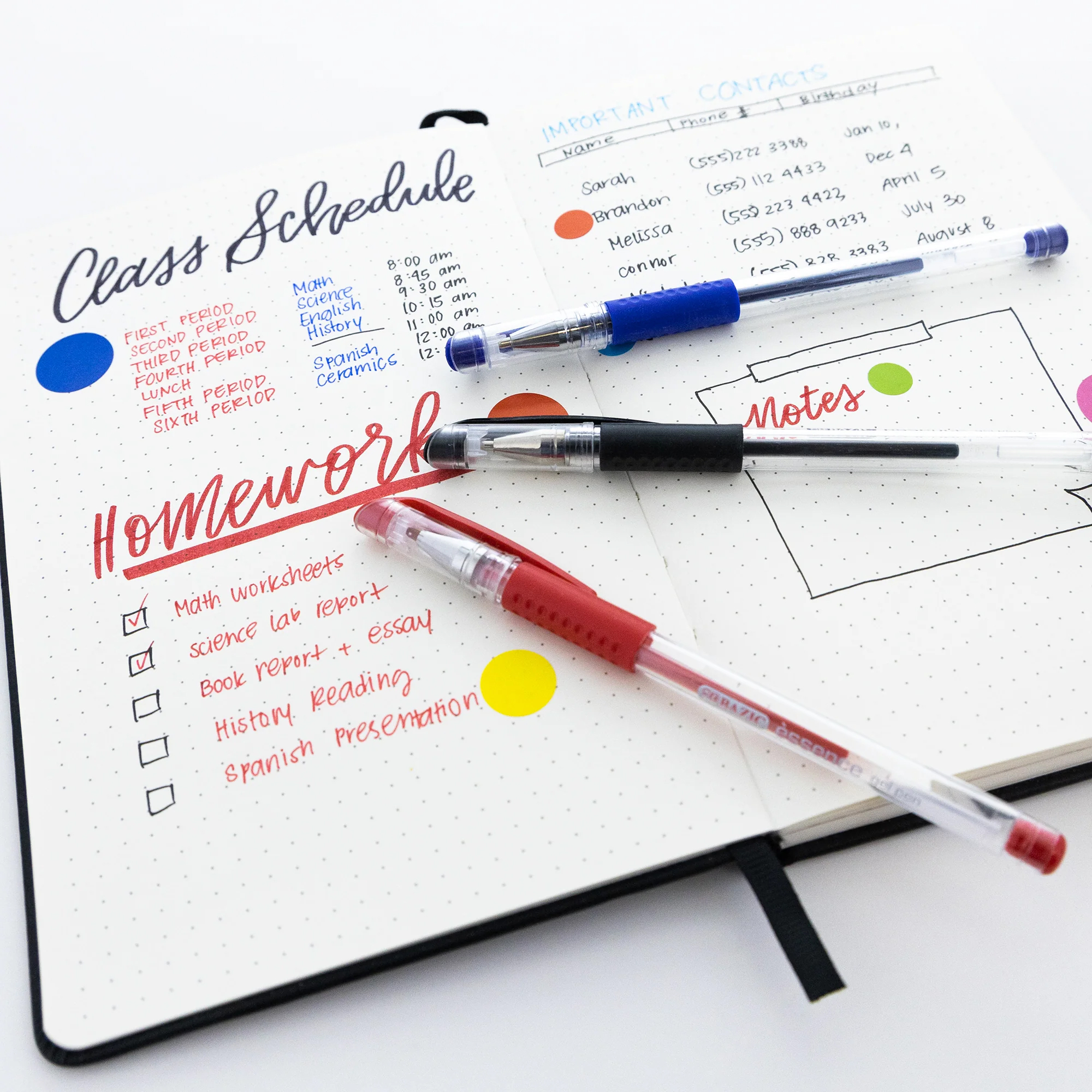 Experience the pleasure of writing with the gel pen’s cushion grip, providing ergonomic support that reduces hand fatigue during long writing sessions and enhances comfort. The 1.0mm medium tip of the pen allows for a perfect balance between fine and bold writing, making it versatile for various tasks, from jotting down notes to creating beautifully legible documents. Its advanced ink technology ensures a smear-free writing experience. The quick-drying ink prevents smudging, ensuring your writing stays crisp and clean, which is ideal for left-handed users and fast-paced note-taking. Keep your hands and documents neat and clean with this gel pen! Crafted with non-toxic ink, it is safe for all users and an eco-friendly choice free from harmful chemicals. Experience a smooth and uninterrupted ink flow that ensures your writing is consistent and free from skips or blotches. Enjoy a durable and reliable writing performance with this gel pen. Each box includes 12 pens.