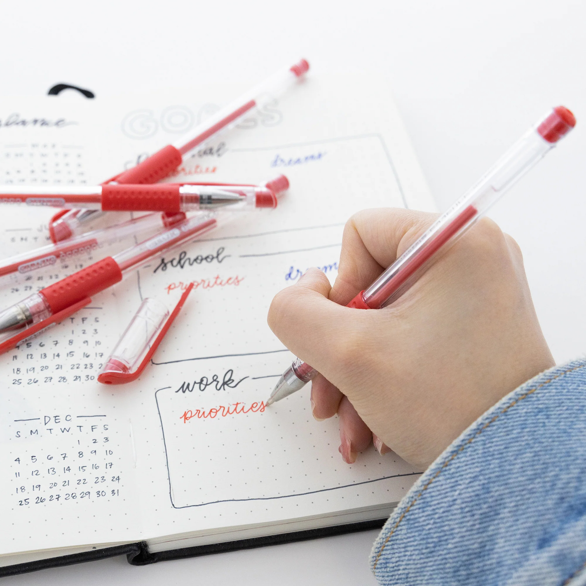 Experience the pleasure of writing with the gel pen’s cushion grip, providing ergonomic support that reduces hand fatigue during long writing sessions and enhances comfort. The 1.0mm medium tip of the pen allows for a perfect balance between fine and bold writing, making it versatile for various tasks, from jotting down notes to creating beautifully legible documents. Its advanced ink technology ensures a smear-free writing experience. The quick-drying ink prevents smudging, ensuring your writing stays crisp and clean, which is ideal for left-handed users and fast-paced note-taking. Keep your hands and documents neat and clean with this gel pen! Crafted with non-toxic ink, it is safe for all users and an eco-friendly choice free from harmful chemicals. Experience a smooth and uninterrupted ink flow that ensures your writing is consistent and free from skips or blotches. Enjoy a durable and reliable writing performance with this gel pen. Each box includes 12 pens.