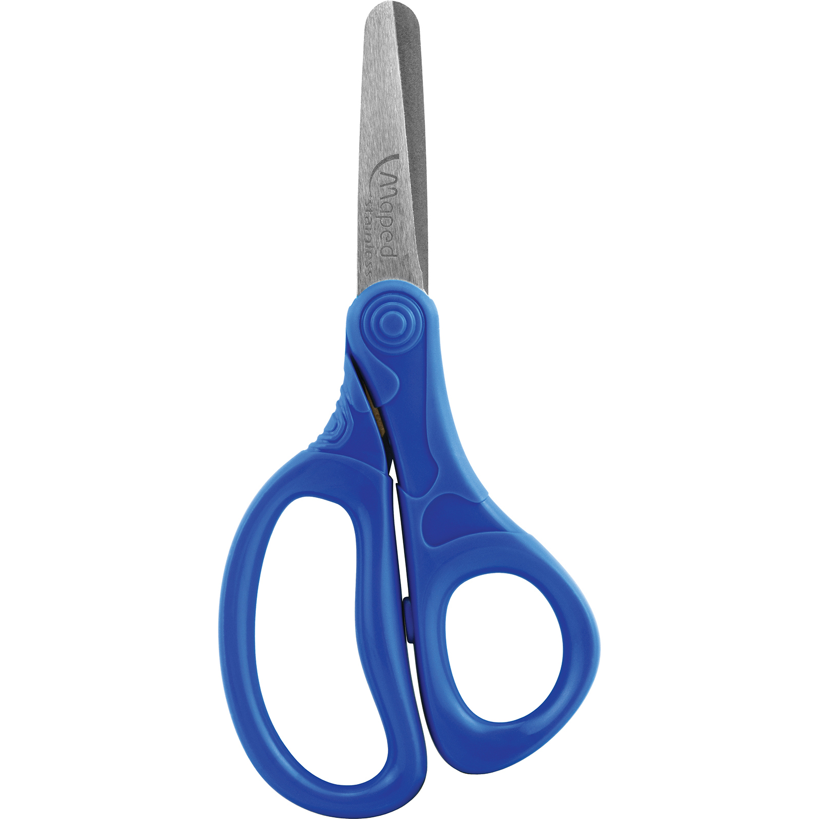 Maped Essentials Kids School Scissors are perfect for young students going back to school! Modern 5″ / 13cm design features Blunt Tip Stainless Steel Blades with a rounded tip that is safer others you can find on the market and are much more appropriate for young students. Eye-catching asymmetrical handles are perfect size for young hands to hold, and are perfect for students 4+ years old. Sold in assorted colors Blue, Light Blue, Red or Green (no color choice).
