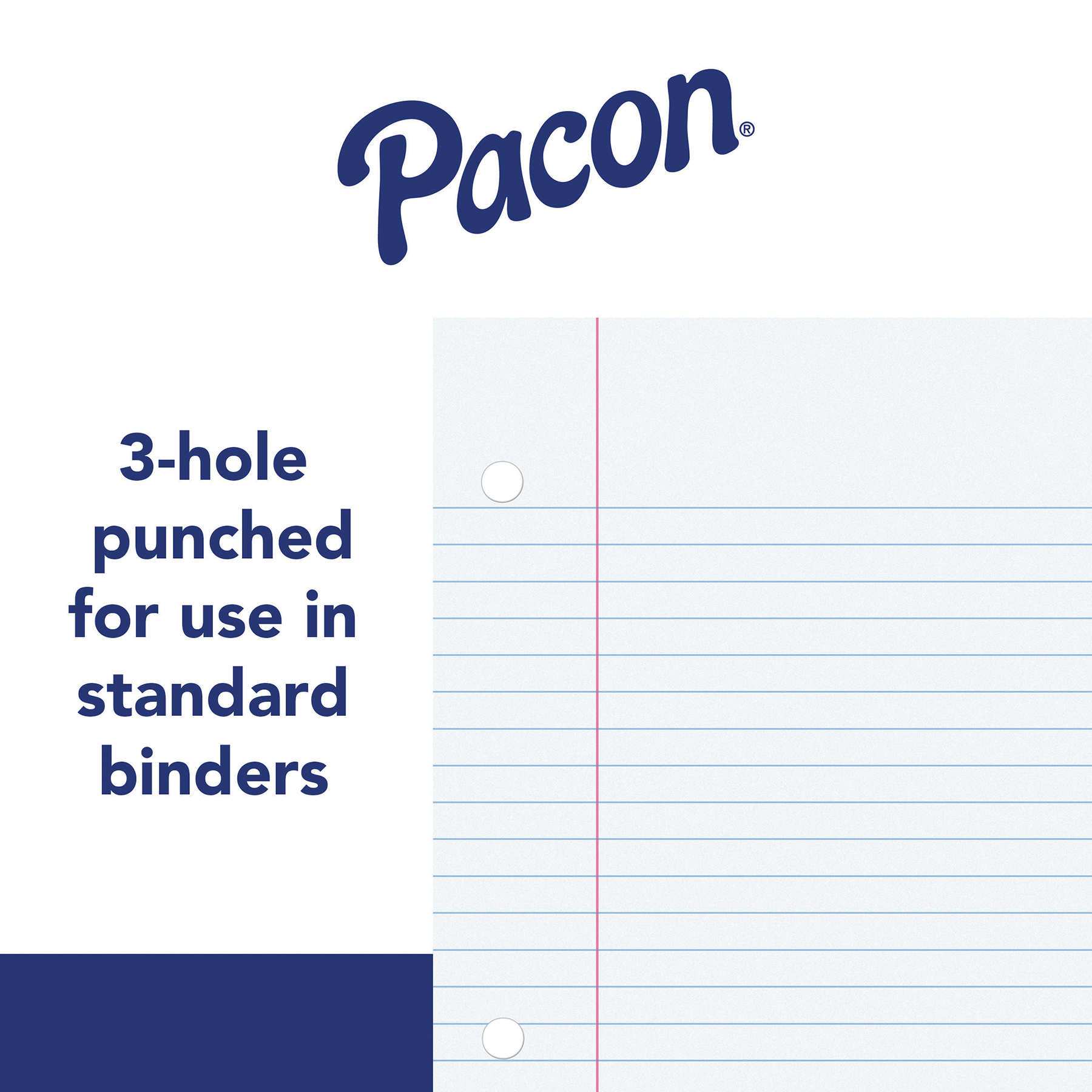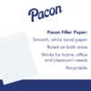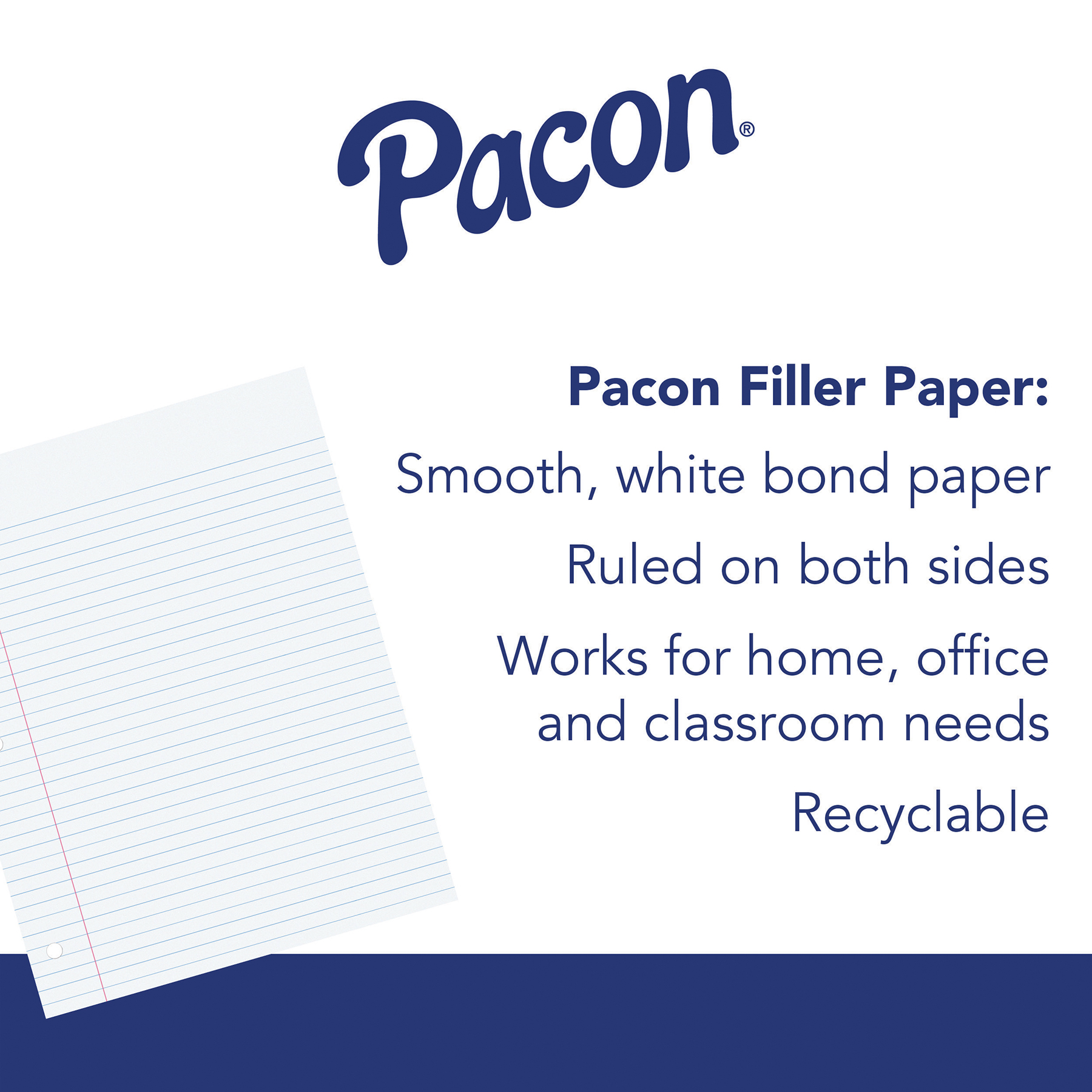 Quality filler paper for all of your home, office and classroom needs. Smooth White paper features 3/8″ wide ruling in 8″ x 10.5″ size. 3-hole punched and ruled on both sides. Recyclable. 200 Sheets.