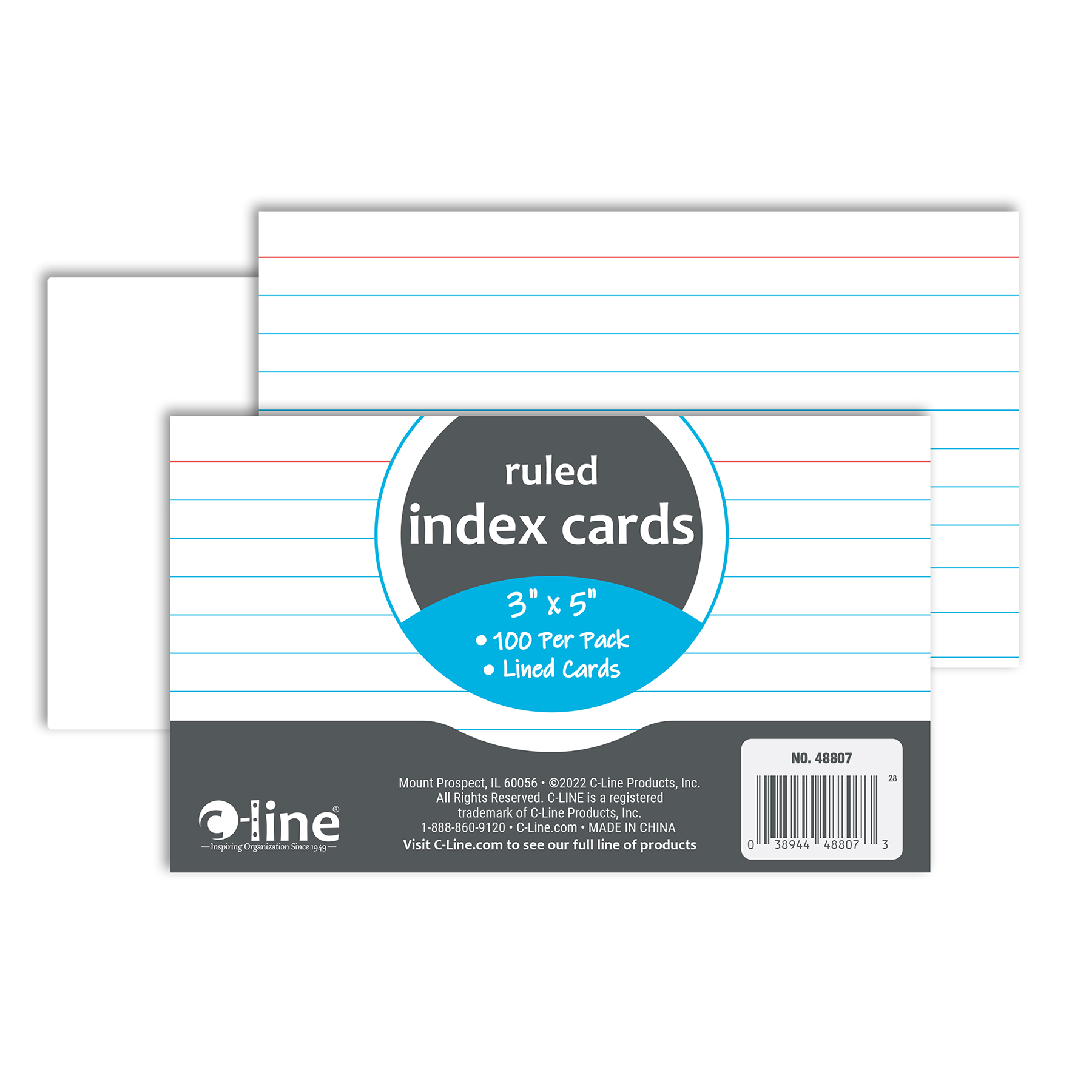 Keep your notes and lists organized with index cards. A must have for Back-to-School. Lined on the front and blank on the back, these index cards are great for flash cards, recipes, to-do lists and more! Perfect for home, school, and office. Each pack contains 100, white index cards.