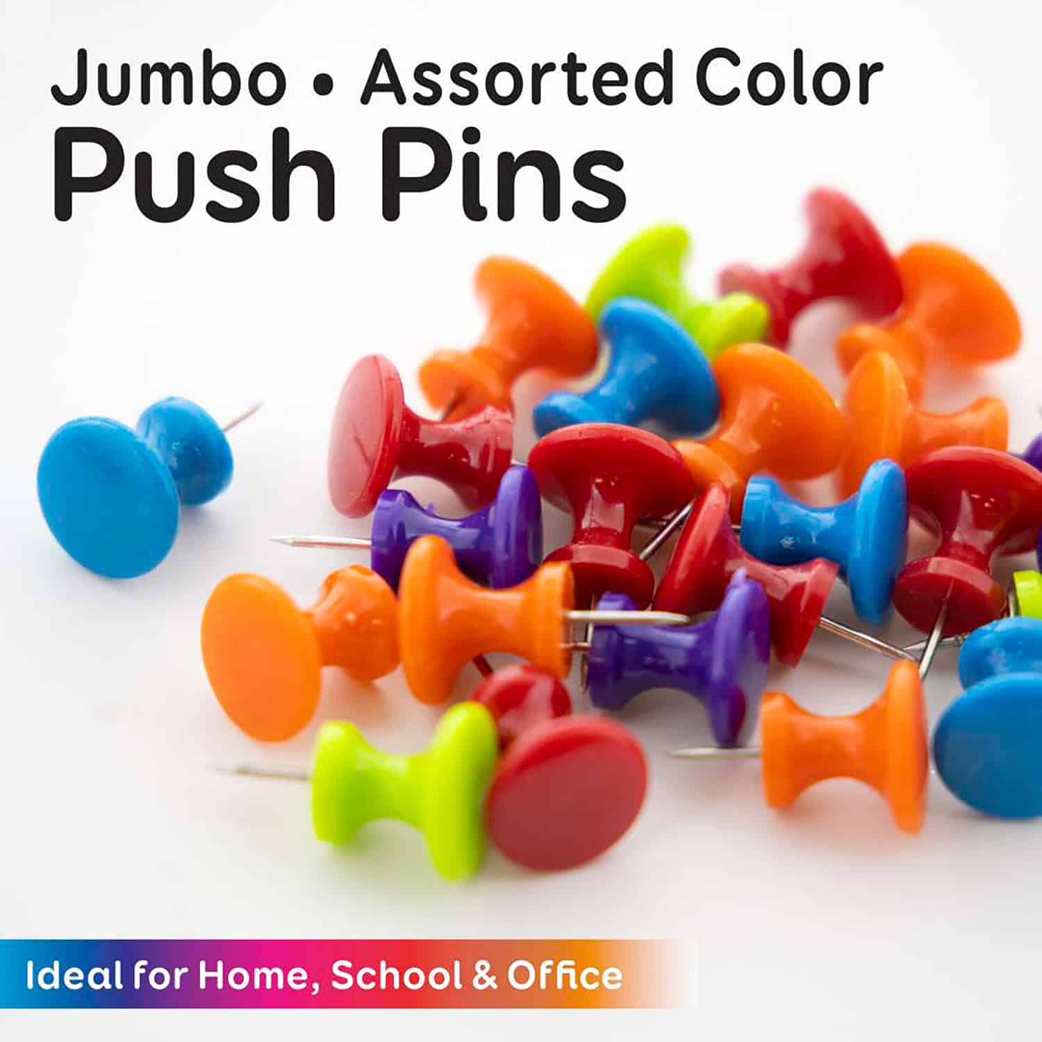 i : JUMBO SIZE. 25-count per pack. Steel point measures 0.45″, with a 0.5″ diameter plastic head. Made of stainless steel metal ensure sharp, durable, and long lasting use. Keep your desk neat and organize.