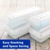 iv : STACKABLE: The smartly designed pencil box allows for easy stacking, maximizing your space-saving capabilities when organizing. Effortlessly stack multiple boxes on top of each other, keeping your workspace tidy and clutter-free.