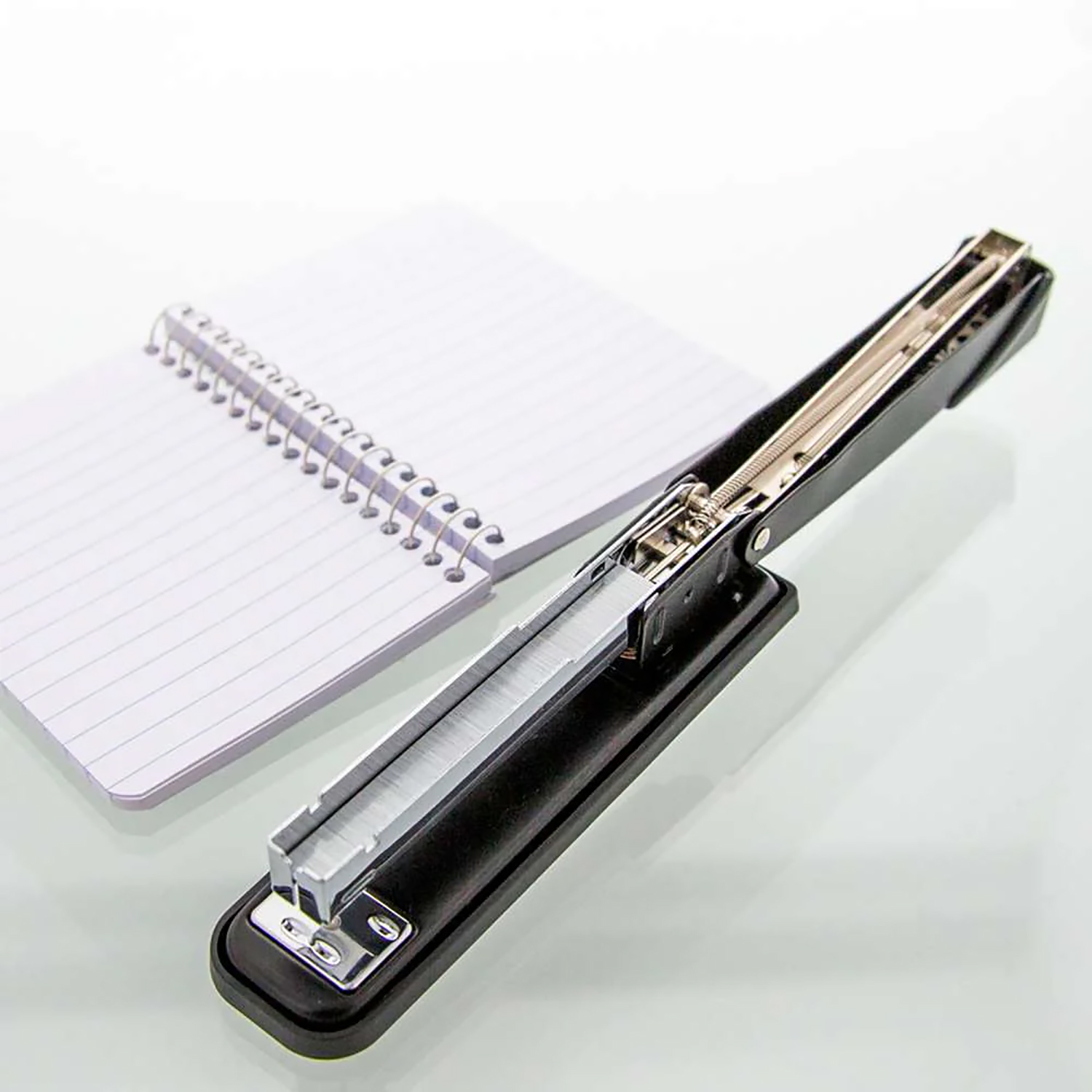 ii : EFFICIENT. Crafted inner rail delivers jam-resistant staples. Fasten up to 20-25 sheets of 80 gsm paper. Opens 180 degrees for tacking or crafting use.