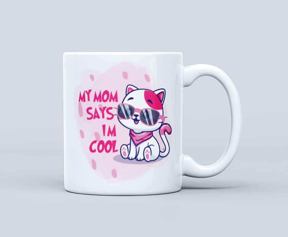 Home Shop My Mom Says Im Cool Pink 15 oz. White Mug