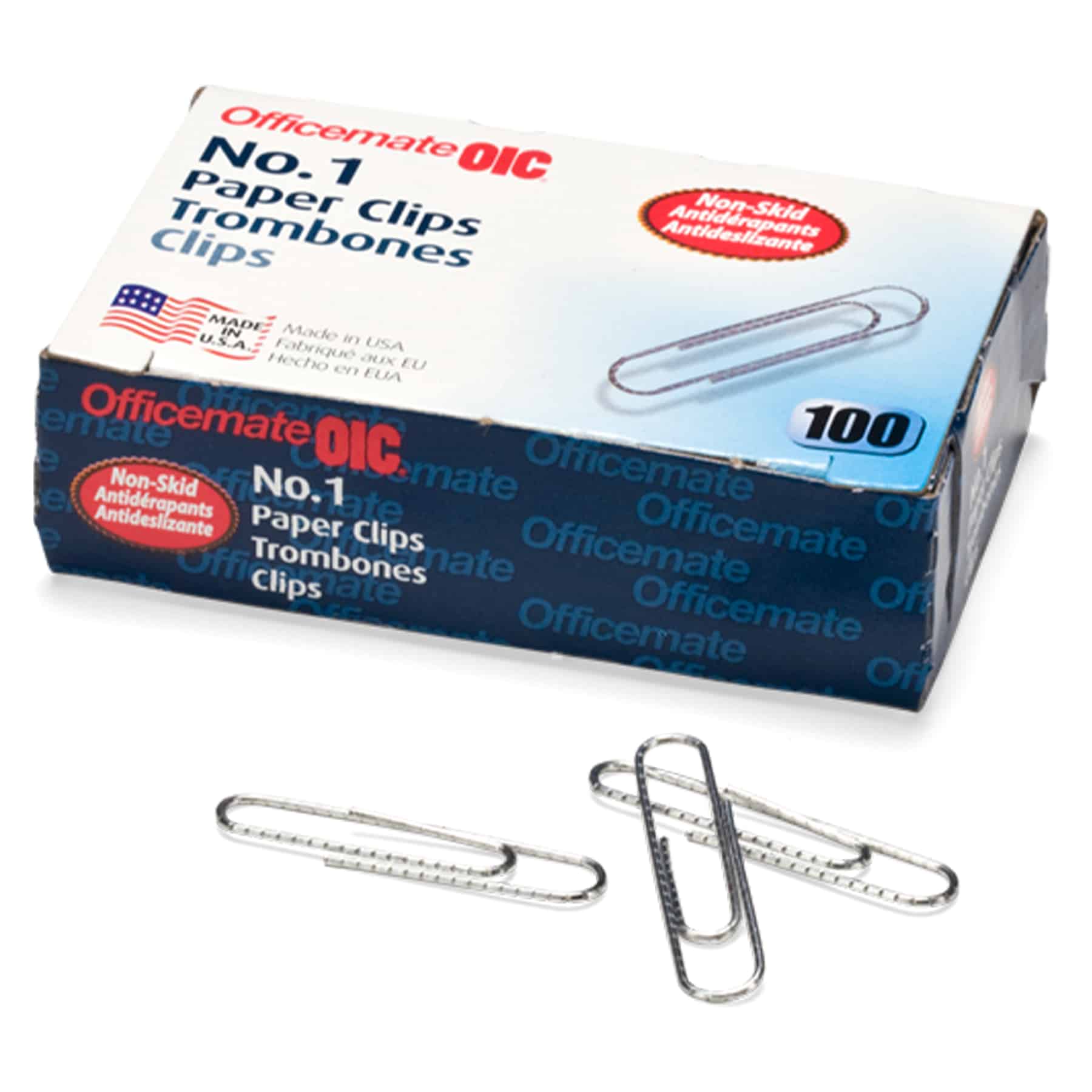 Non-skid finish with serrated wire keeps clips from slipping off packets of papers. #1 size. Made from the highest quality steel and feature a bright, corrosion-resistant finish. Made in USA. Each box includes 100 paper clips. Sold as 10 boxes for a total of 1000 paper clips.