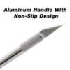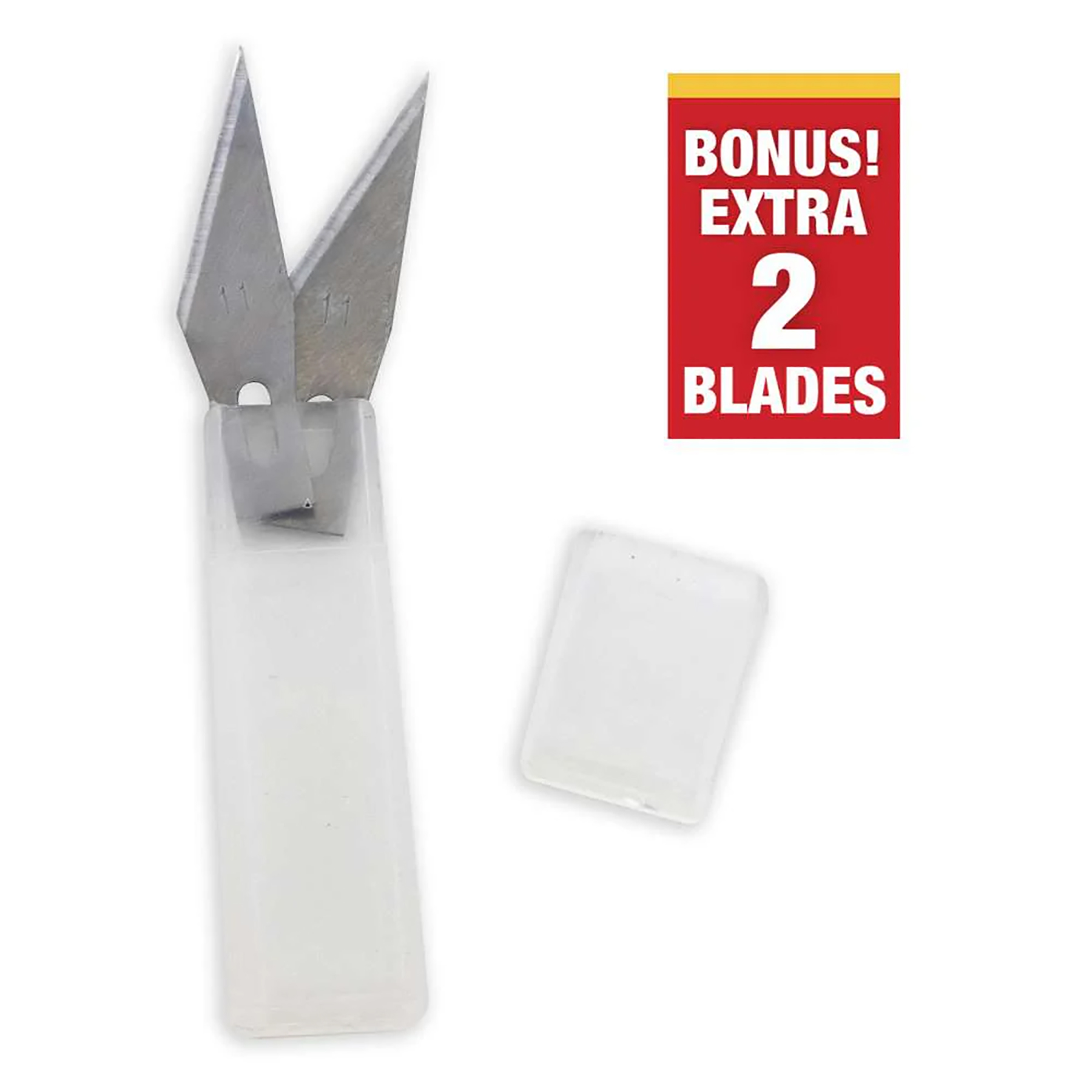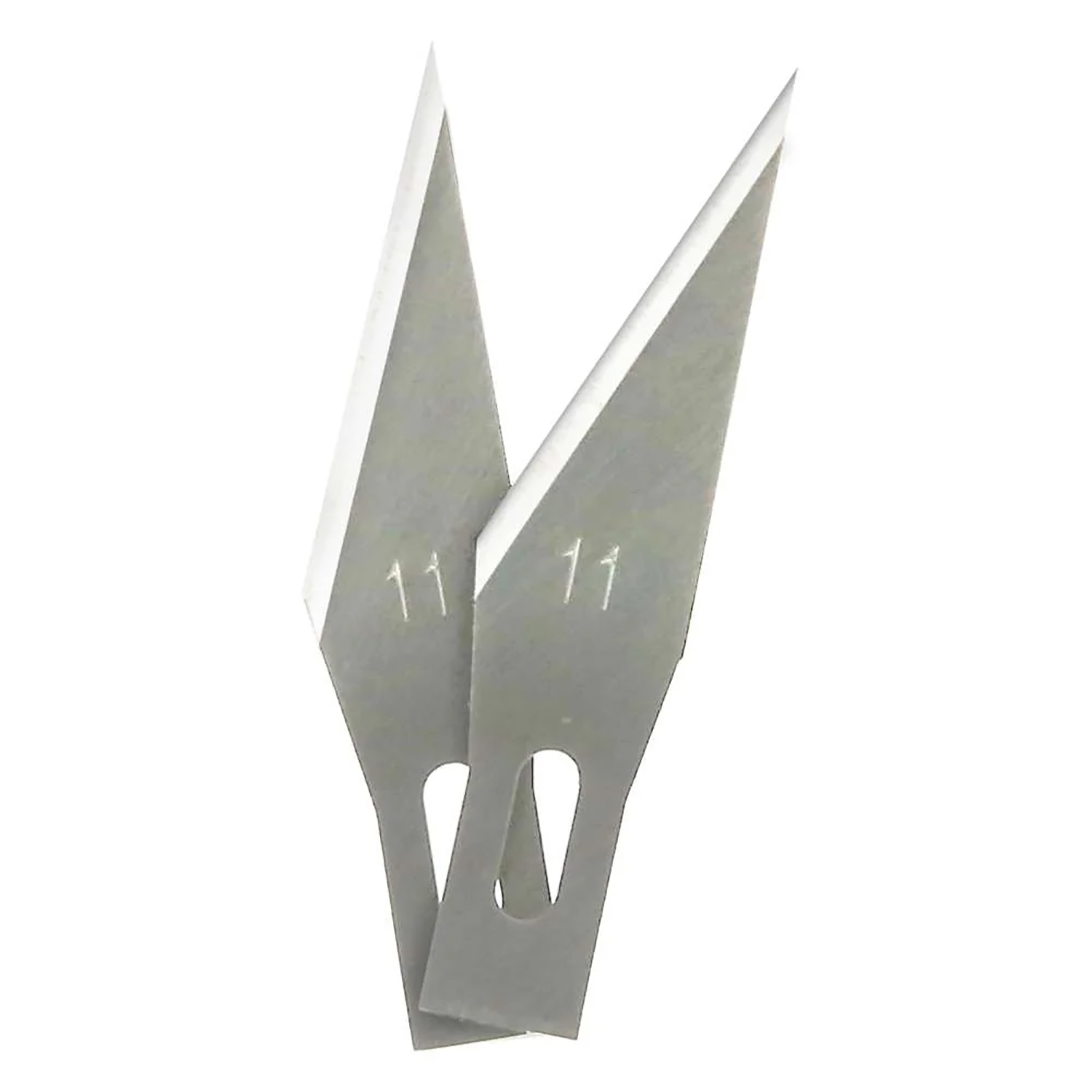 i : RELIABLE & DURABLE. #11 precise knife is sturdy and strong as it has stainless steel cutters of high quality and non slip handle. Cut sharp and rust resistance. Bonus extra 2 blades per pack.