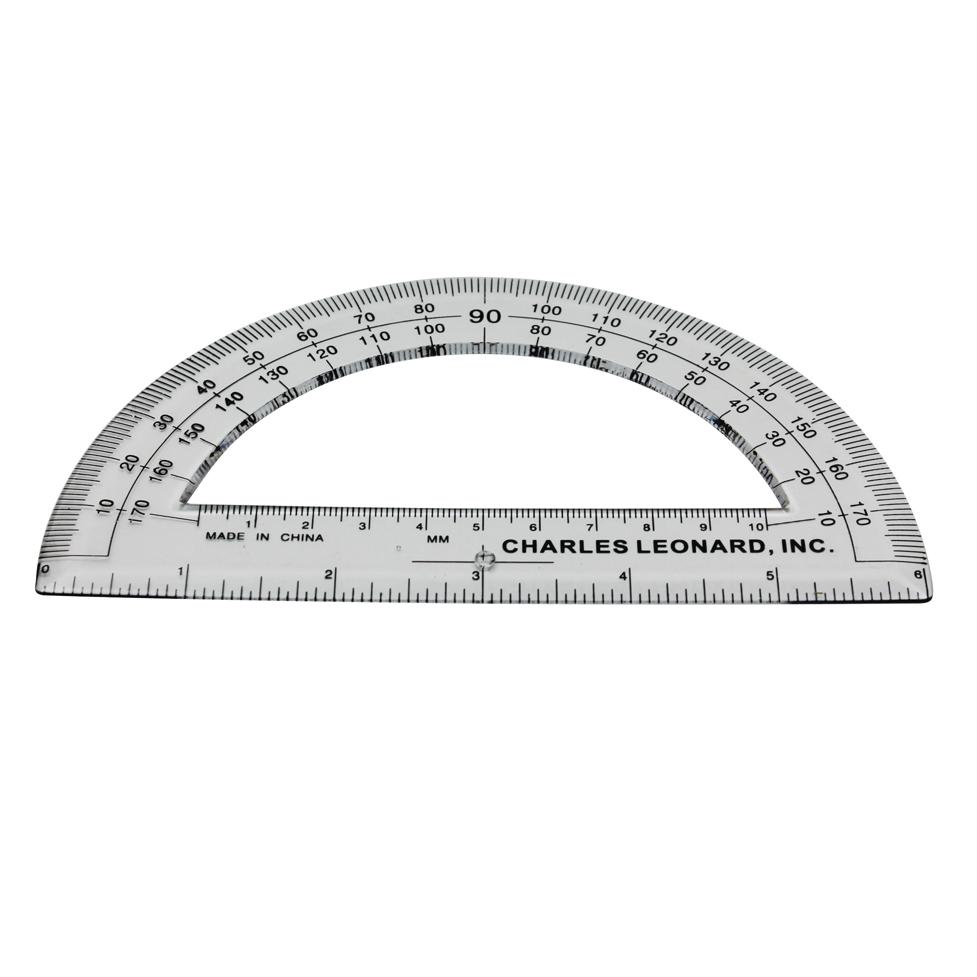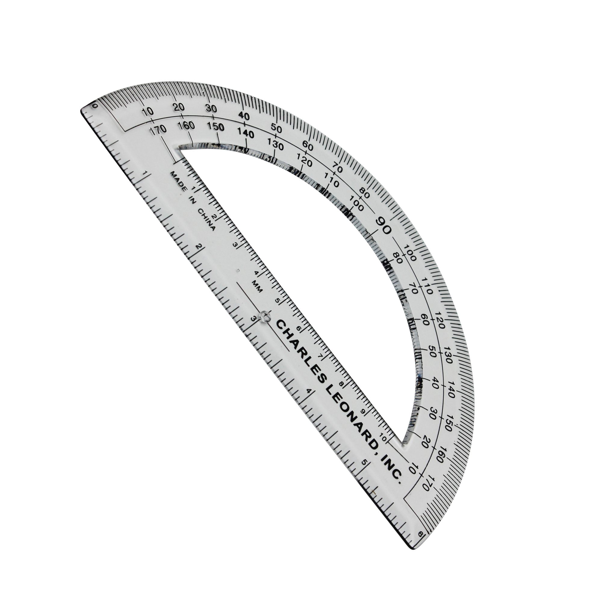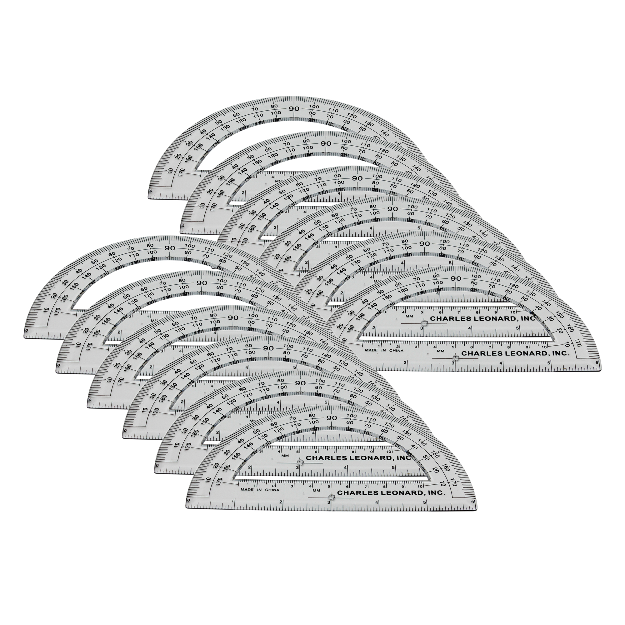 The Charles Leonard Protractor Plastic is a must-have tool for young mathematicians. This pack of 12 6-inch clear plastic protractors is perfect for students learning about angles. The protractor features an open center and a 6-inch ruler at the base, with measurements in both metric and inches. The sharply defined graduations make it easy for students to identify angles from 0 to 180 degrees, helping to minimize visual errors. The easy-to-read numbers and clear transparent plastic make this protractor durable and long-lasting, ensuring it will be a staple in any classroom or home learning environment.