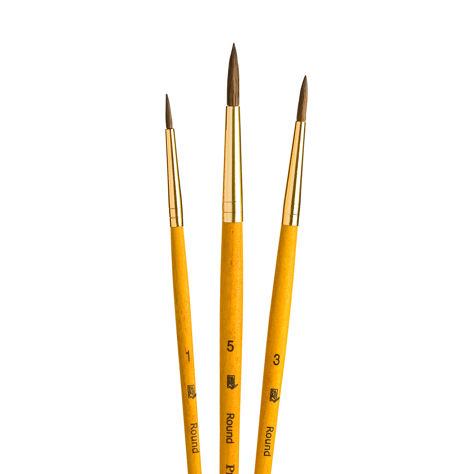 RealValue Round Brush Set, Camel Bristles, Short Handle Mixed Media Paintbrush, Yellow, 3 Pieces