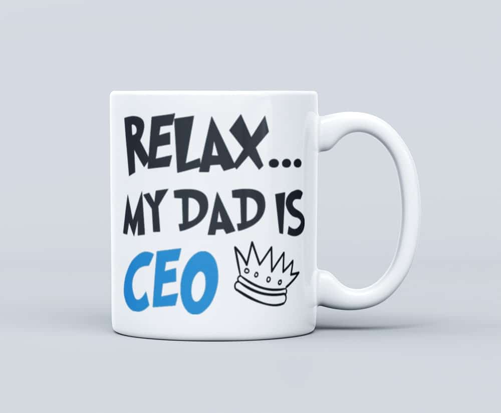Home Shop Relax My Dad Is CEO Blue 15 oz. White Mug