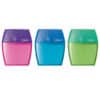 A classic – The Shaker is a very practical sharpener with a large integrated shavings canister! Bright, transparent sharpener with shatter-resistant container available in assorted colors (no color choice). Sold as 1 pencil sharpener.