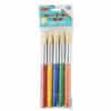 Round stubby brushes feature brightly colored 7 1/2″ plastic handles. Natural hog bristles held in seamless aluminum ferrule. Color coded to match Creative Arts™ spill proof paint cups.