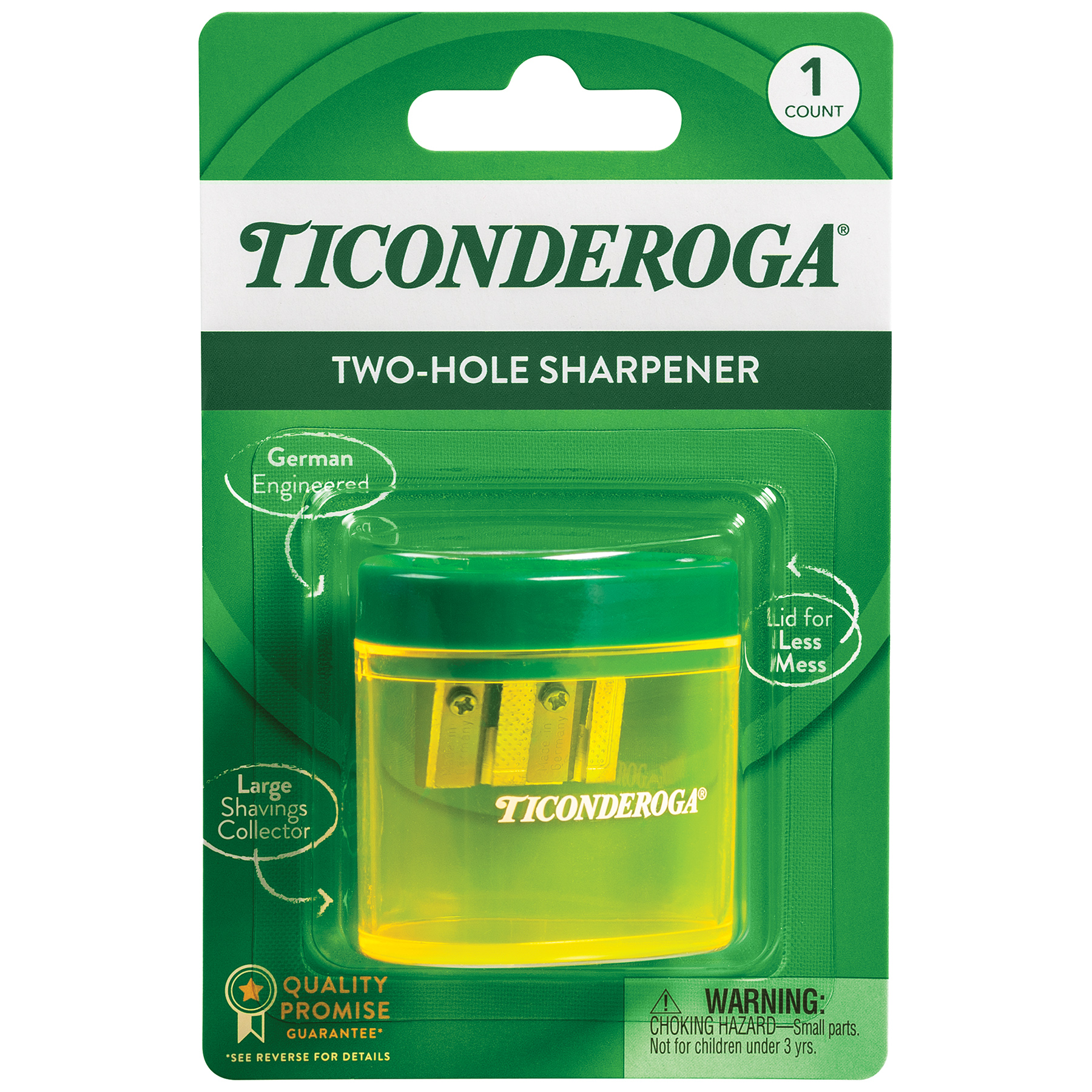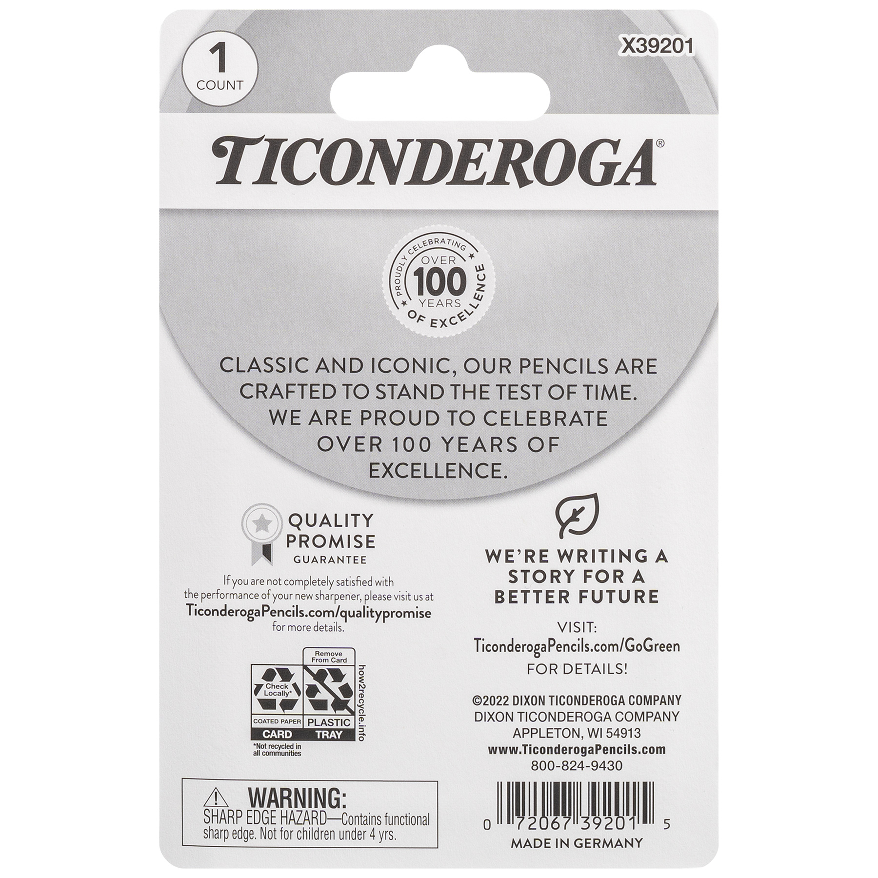 The World’s Best Pencil® Company now brings you a best-in-class German-engineered pencil sharpener! Cheap sharpeners can break easily, over-sharpen pencils, and break tips resulting in unnecessary pencil waste. The Ticonderoga® pencil sharpener is German-engineered, with quality metal blades that sharpen cleanly and with ease. The ergonomic shape also fits well in-hand making it the best choice for supporting your writing, drawing, and creative needs.