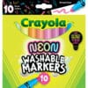 Dive into a spectrum of dazzling hues with this pack of Crayola Neon Washable Markers! These aren’t just any markers – they are a vibrant selection of 3 bright neon colors and 7 fluorescent shades that turn an ordinary drawing session into a glowing extravaganza, especially under a blacklight. Imagine the masterpiece you can craft with vivacious colors like Electric Lime, Atomic Tangerine, and Shocking Pink, alongside the mystical glow of Laser Lemon and Purple Pizzazz. Designed with robust conical tips, Crayola Broad Line Markers are perfect for all sorts of artwork, from bold strokes to delicate details, ideal for enriching classroom activities and group projects. Plus, no need to worry about messes, as these markers are washable from skin and most fabrics. Give these markers as a gift for boys and girls on birthdays, holidays, or just because. Safe and nontoxic, great for ages 3 and up.