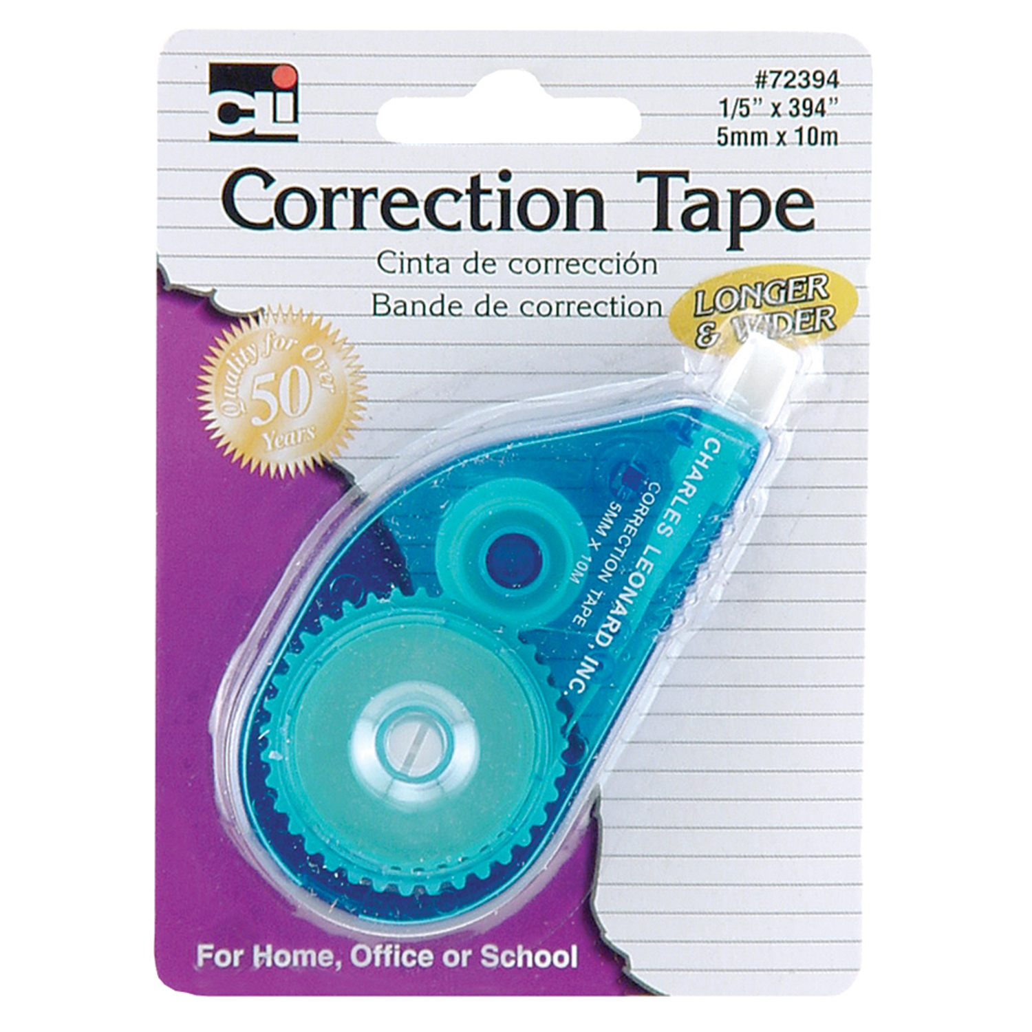 Sideways application provides easier use and promotes higher accuracy. Write or type immediately, with no drying time. No mess, odor, or fax and copy shadow. Wind up mechanism, makes for easy tape adjustment. White tape, non-acid and non-refillable.