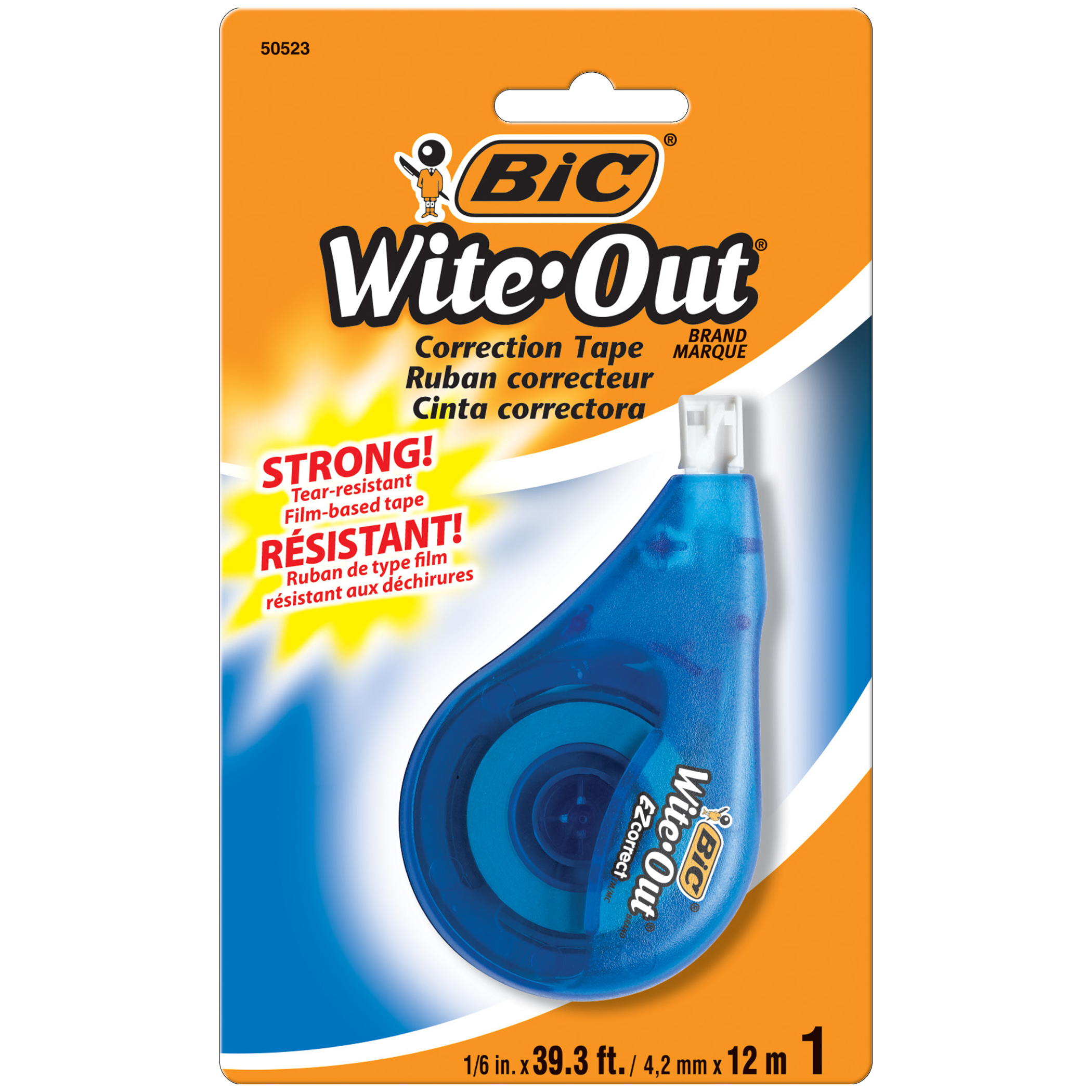 Quickly correct typed or handwritten documents with BIC White-Out Brand EZ Correct Correction Tape. Made by America’s #1 Correction Brand*, this correction tape goes on dry, allowing you to make instant corrections with no mess and no waiting time. Dispensing the tape is easy: simply hold the dispenser with your thumb in the groove, position the tip flat on your paper, press down firmly, and gently move from left to right. Offering greater strength than paper-based tape, this film-based correction tape is more tear resistant to create tidy, inconspicuous corrections that last. The self-winding mechanism helps prevent the tape from loosening, so you can apply the tape smoothly and accurately. And thanks to its translucent body, the dispenser lets you see how much tape is remaining. *Source: The NPD Group/ Retail Tracking Service/ U.S. Actual Unit Sales (Retail & Commercial Combined)/ Jan – Dec 2018